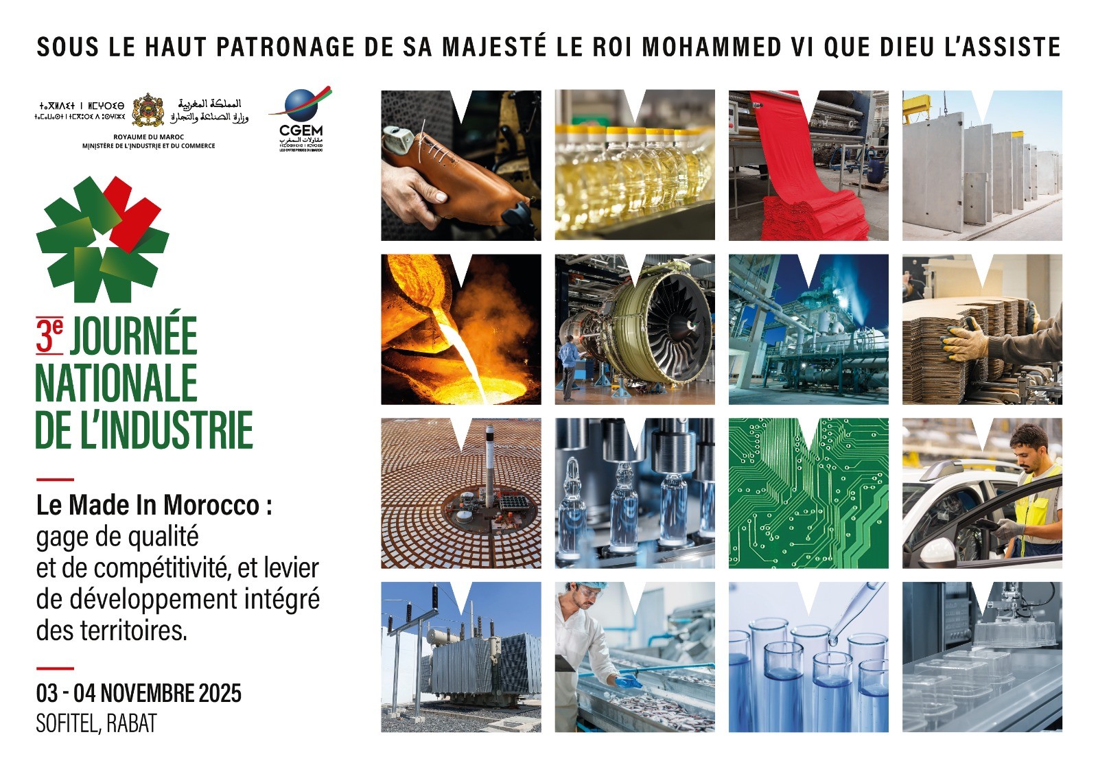 Le Made in Morocco occupera une place centrale lors de la troisième édition de la Journée Nationale de l’Industrie, prévue les 3 et 4 novembre à Rabat. Organisée conjointement par le ministère de l’Industrie et du Commerce et la CGEM, cette rencontre se tiendra sous le Haut Patronage de S.M le Roi Mohammed 6.
