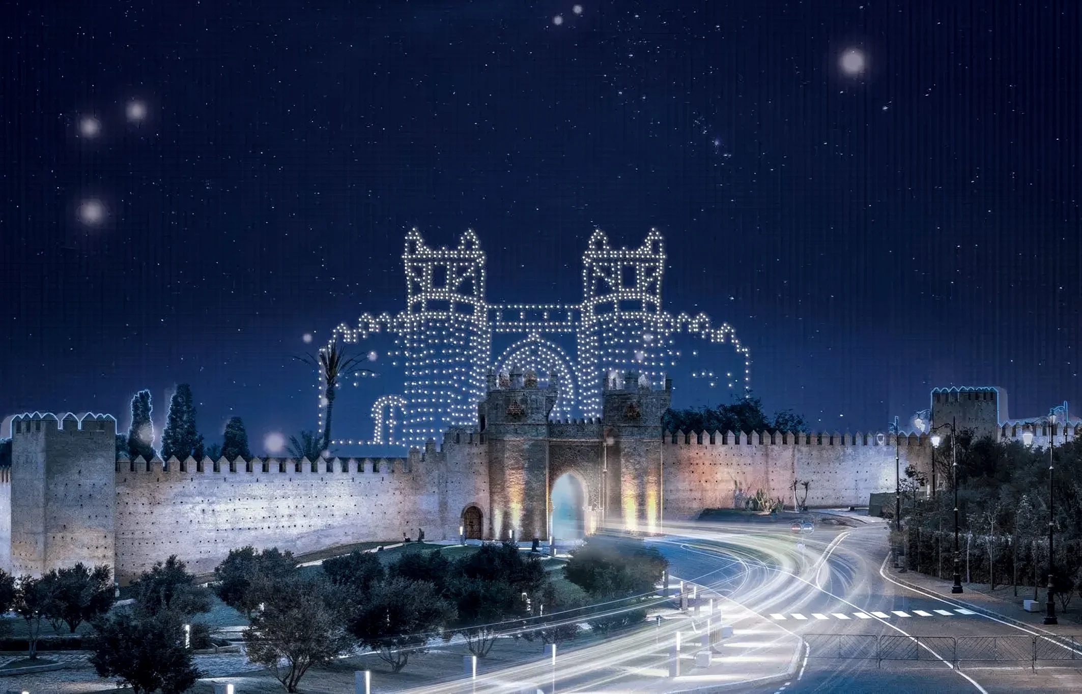 Le site archéologique de Chellah à Rabat a offert jeudi soir un spectacle inédit où l’histoire et la technologie se sont rencontrées. Des centaines de drones ont illuminé le ciel dans le cadre du show lumineux « Nostalgia », une performance artistique conçue pour mettre en valeur l’héritage historique et archéologique du Maroc.
